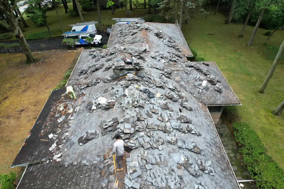Our team replaced all damaged and missing shingles with ones that matched the existing roof for a seamless finish. We reinforced the flashing around the chimney, skylights, and vents, applying a high-grade sealant to ensure long-lasting protection against water infiltration. To further secure the roof, we inspected and tightened any loose shingles, providing added resilience against future storms.